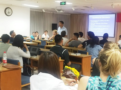 今年,汉语暑期学校就分班考试进行了优化改进。项目学生能以自评的方式参与考试,考试时间由以前的一个半小时缩短至半小时。考试结束后,留学生办公室为同学们详细地介绍了在京学习、生活等各方面事宜,提醒了健康、安全等注意事项,并邀请去年曾参加此项目,且今年再次来学习的Erling Midtgard同学为大家分享经验。Erling来自挪威,在去年的汉语暑期学校中受益匪浅,他希望项目的同学们能多深入了解中国文化,体验在中国的生活,多出去走走、看看,多和中国朋友交流,更全面地学习中文,更深入地了解中国文化。