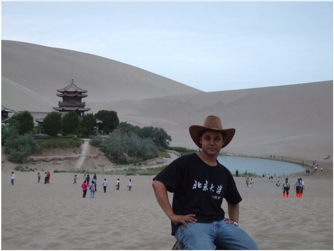 2009年夏季,北大留学生青海甘肃之行,柯修在敦煌月牙泉边