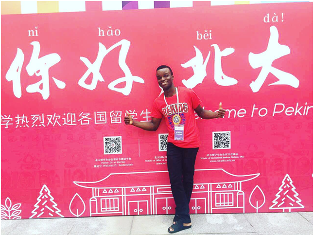 门杜是一位来自喀麦隆的非洲留学生,目前在北京大学国际关系学院攻读硕士学位。2015年,门杜初入北大,在对外汉语交流学院完成了一年的中文学习,并在2016年通过留学生研究生考试顺利进入国际关系学院深造。他已经连续两年时间报名担任迎新志愿者。