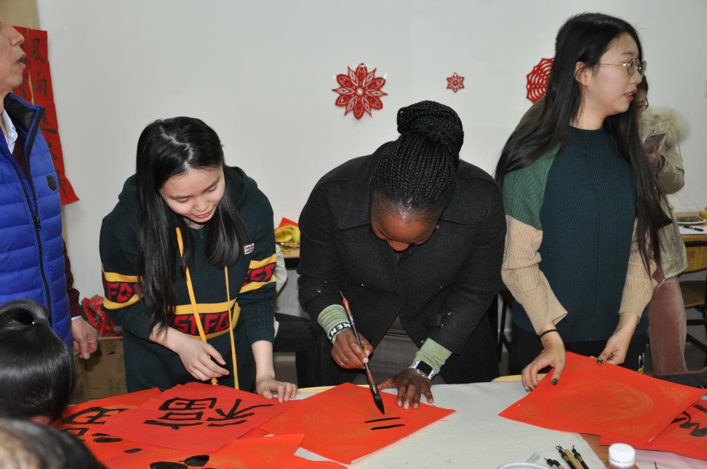 联欢活动洋溢着浓厚的节日气氛,留学生和中国学生一起学习剪纸和书法,他们剪出了一个个漂亮的窗花,写出了一个个了大气的“福”字,并学到了中国年的许多习俗。留学生表示,他们将把这些经历讲给自己的家人,让更多人了解中华文化。