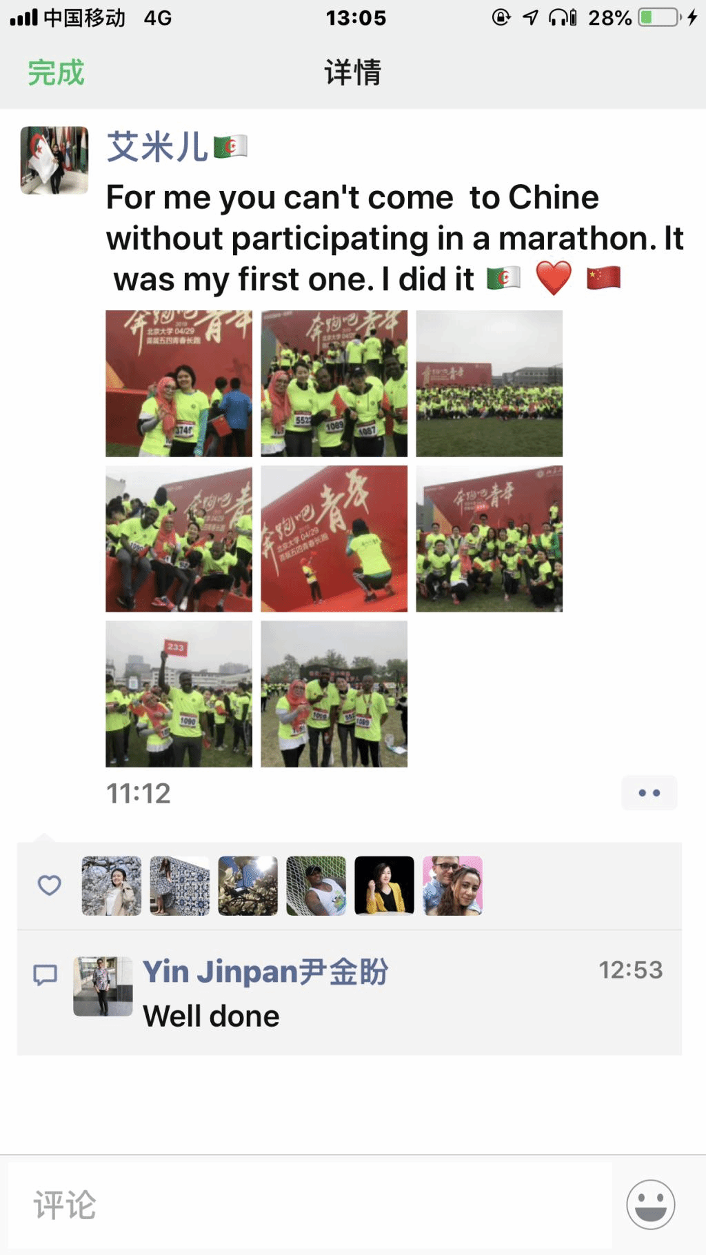 ——非常荣幸能够以留学生的身份,参与北大纪念五四百周年的活动。从北大到圆明园的长跑,在跨越历史的同时,也让我深刻体会到了中国青年们的激情与活力——在路上相互鼓励的“加油”,坚持不懈跑到终点的毅力。这或许就是五四精神在新时代的体现。(张汐莹 新加坡 国关本科)