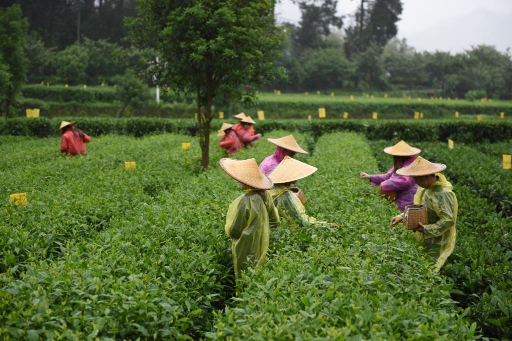 为了解贵州当地生态文明建设和特色产业发展,同学们还来到了遵义市湄潭县。这里也曾经是浙江大学的西迁校址所在地,不仅生态优美,而且人文荟萃。绿水青山就是金山银山,今日的湄潭以茶闻名天下,被誉为“中国名茶之乡”,是贵州省最大的茶叶基地。“湄潭翠芽”是其知名品牌,在生产上实行统一规范化管理,即“品种统一,种植统一,生产加工统一,包装统一”。同学们走进茶企听取茶文化和产业发展介绍,并在细雨中走上茶山采摘茶叶,鲜艳的雨披绽放在一望无际、莽莽青青的茶山间,构成一幅美丽生动的初夏采茶图。大家在知行合一的劳动体验中,深刻体味充满中国韵味的茶文化,亲身感受当地蓬勃发展的茶产业。