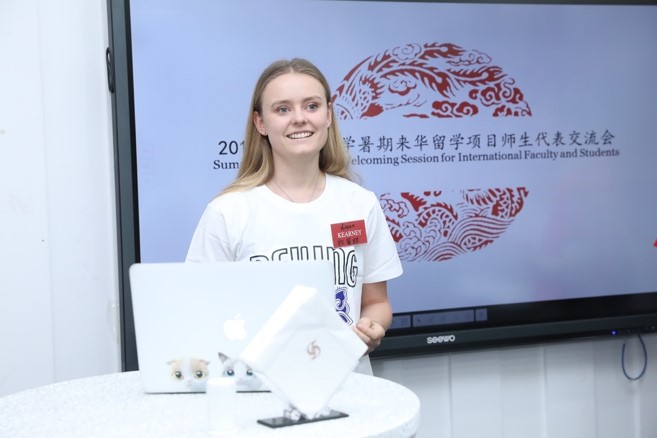 最后,来自牛津大学的学生代表Kearney Aileen与来自圣母大学的学生代表Patrick Hughes分别分享了自己在北大学习生活的体验。Aileen同学来自牛津大学圣休学院,她认为来北京大学学习为她的学生生涯增添了别样风采,她感谢北大为她带来丰富的学习机会和良好的配套支持,北大的课程不仅提高了她的汉语水平,还让她更加深入地了解中国文化,品尝中国的真正“原味”。Patrick同学充满感情地表达了对北大暑期课程的喜爱和感激,这是他第二次选择来到北大学习,他认为北大优质的教学资源和轻松的生活氛围让他感到自在和愉快,这所美丽的大学无疑已成为他心中的第二个“家”。