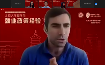 在北京大学建校122周年、五四青年节之际,5月4日下午,北京大学国际合作部在线上举行“留学生就业政策经验交流分享会”。教育部留学服务中心来华留学事务处项目主管贾经华、2014级以色列校友高佑思(GALOR RAZZVI)、2014级马来西亚校友阿蒂(AARTHEE SALVARAJA)围绕在华就业的政策和经验等进行了在线分享并与同学们交流。