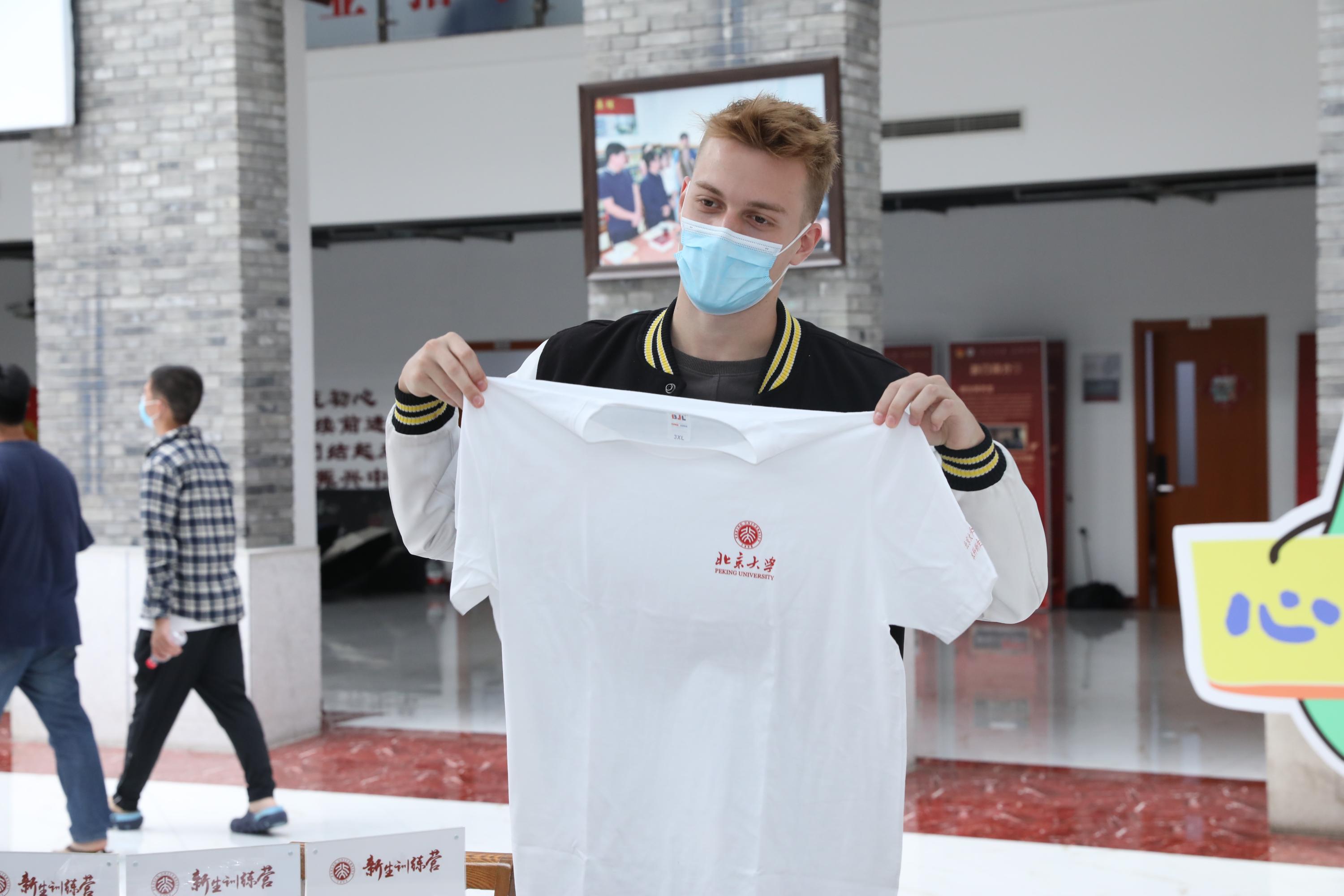 留学生新生期待穿起北京大学文化衫
