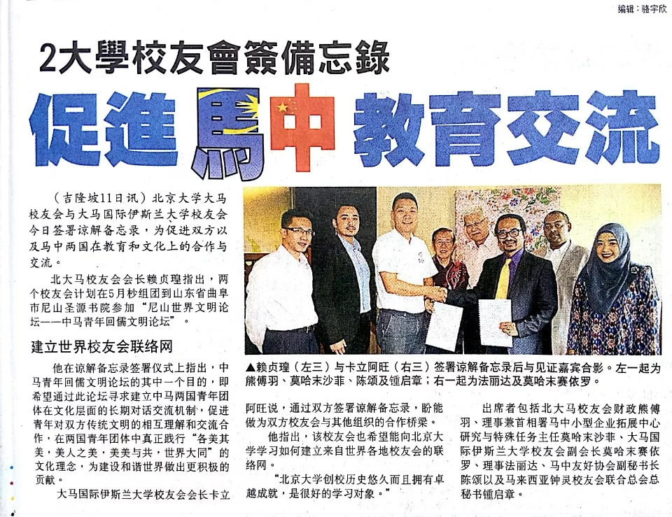 他积极联络马来西亚的北大校友,加强与母校的联系与交流,协调母校在马来西亚的招生工作和教育活动,协助推动及促进马来西亚与中国的文化和学术交流。